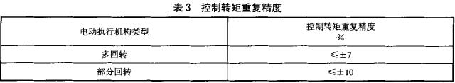 5.2.19電動(dòng)執(zhí)行機(jī)構(gòu)的轉(zhuǎn)矩控制部分應(yīng)靈敏可靠,并能調(diào)整輸出控制轉(zhuǎn)矩的大小,控制轉(zhuǎn)矩的重復(fù)精度應(yīng)符合表3的規(guī)定。