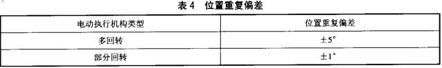 5.2.20電動(dòng)執(zhí)行機(jī)構(gòu)的行程控制機(jī)構(gòu)應(yīng)靈敏可靠,控制輸出軸的位置重復(fù)偏差應(yīng)符合表4的規(guī)定,并應(yīng)有調(diào)整“開(kāi)”和“關(guān)”位置的標(biāo)志。