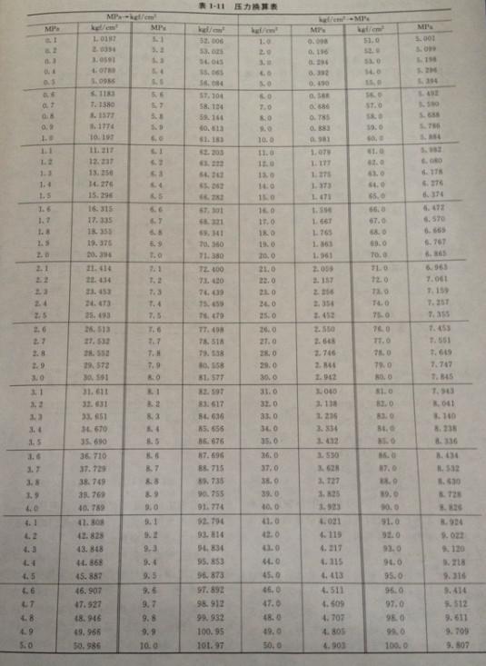 在閥門的設(shè)計投敵、銷售和訂貨中,由于各個國家使用的閥門壓力單位不同,經(jīng)常遇到不同壓力單位的換算,為了方便查找,將經(jīng)常遇到的一些單位換算近似值列入表1-9~表1-11。