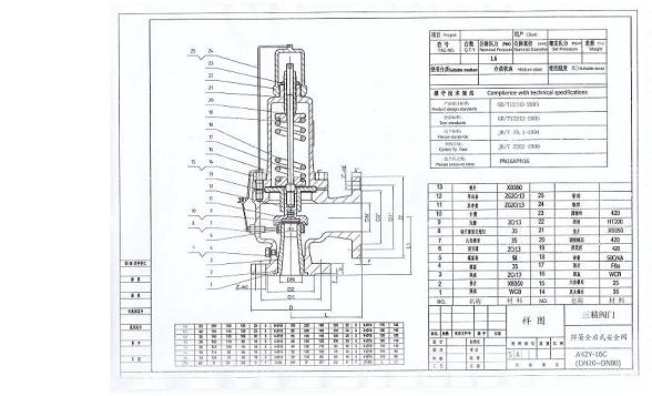 彈簧全啟式安全閥主要零部件材料