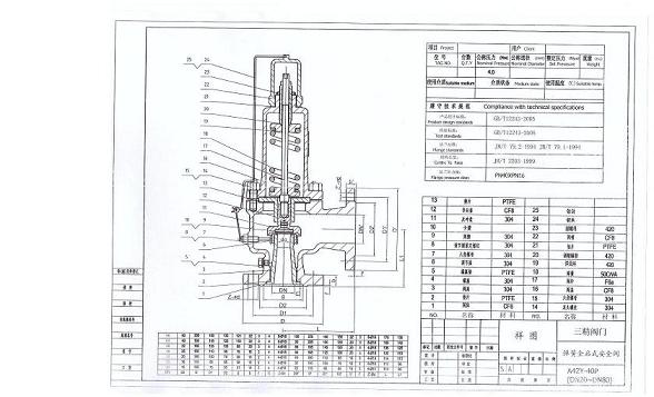 A42Y彈簧全啟封閉式安全閥  :A42Y彈簧全啟封閉式安全閥適用于工作溫度≤300℃空氣、石油氣、液體等介質(zhì)的設(shè)備和管路上。不銹鋼彈簧全啟封閉式安全閥適用于工作溫度≤200℃有腐蝕性的介質(zhì)的設(shè)備和管路上,作為超壓保護裝置。彈簧全啟式安全閥連接法蘭標準按JB/T……-94系列1。≥6.4MPa按JB/T……-94系列2。