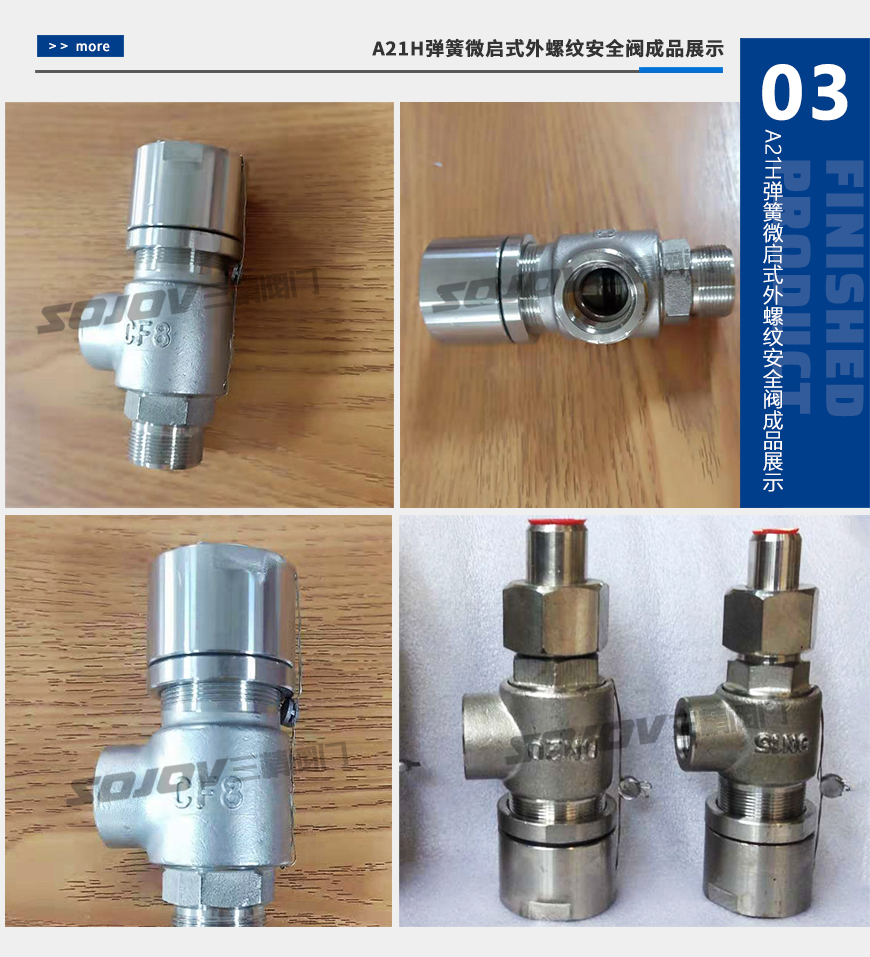 A21F、A21H彈簧微啟式外螺紋安全閥適用于工作溫度≤200℃的空氣、氨、石油氣……等介質(zhì)的設(shè)備或管路上。A21W-P、R不銹鋼彈簧微啟式外螺紋安全閥適用于溫度≤200℃有腐蝕性的氣體或液體的設(shè)備或管路上,作為超壓保護裝置。KA21Y彈簧微啟式外螺紋抗硫安全閥適用于溫度≤100℃的液化石油氣等。