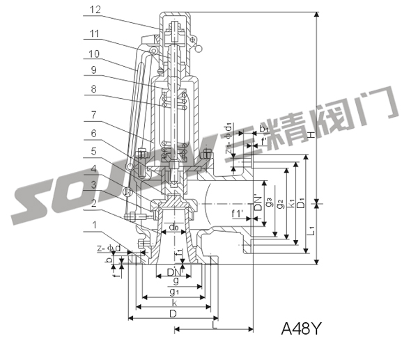 A48Y彈簧式蒸汽安全閥適用于工作溫度≤350℃的蒸汽、空氣等介質(zhì)的設(shè)備和管路上。連接法蘭標(biāo)準(zhǔn)PN<6.4MPa按JB/T-94系列1。PN≥6.4MPa按JB/T-94系列2標(biāo)準(zhǔn)
