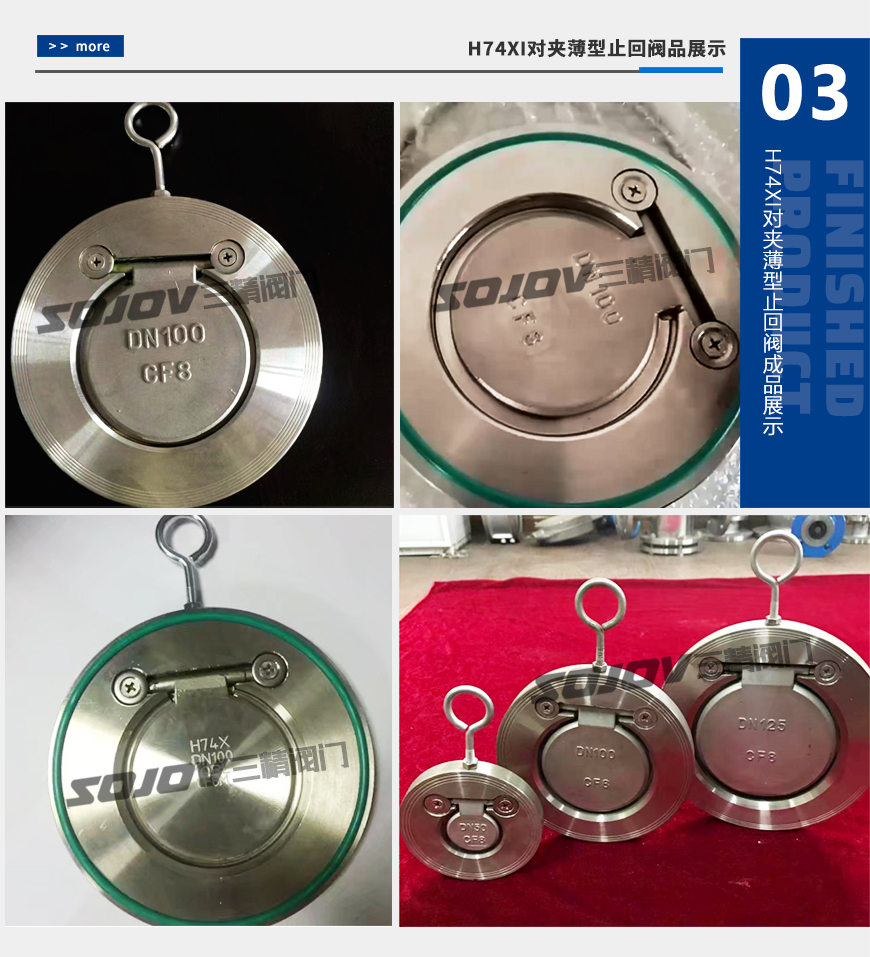 H74Ⅰ型、Ⅱ型對(duì)夾圓片式止回閥,是一種超薄形止回閥,它具有結(jié)構(gòu)簡(jiǎn)單,外形美觀、重量輕,安裝方便等優(yōu)點(diǎn)。該閥主要適用于給水系統(tǒng)、石油、化工、冶金等工業(yè)部門對(duì)有安裝空間限制的場(chǎng)所最為適用。 ]