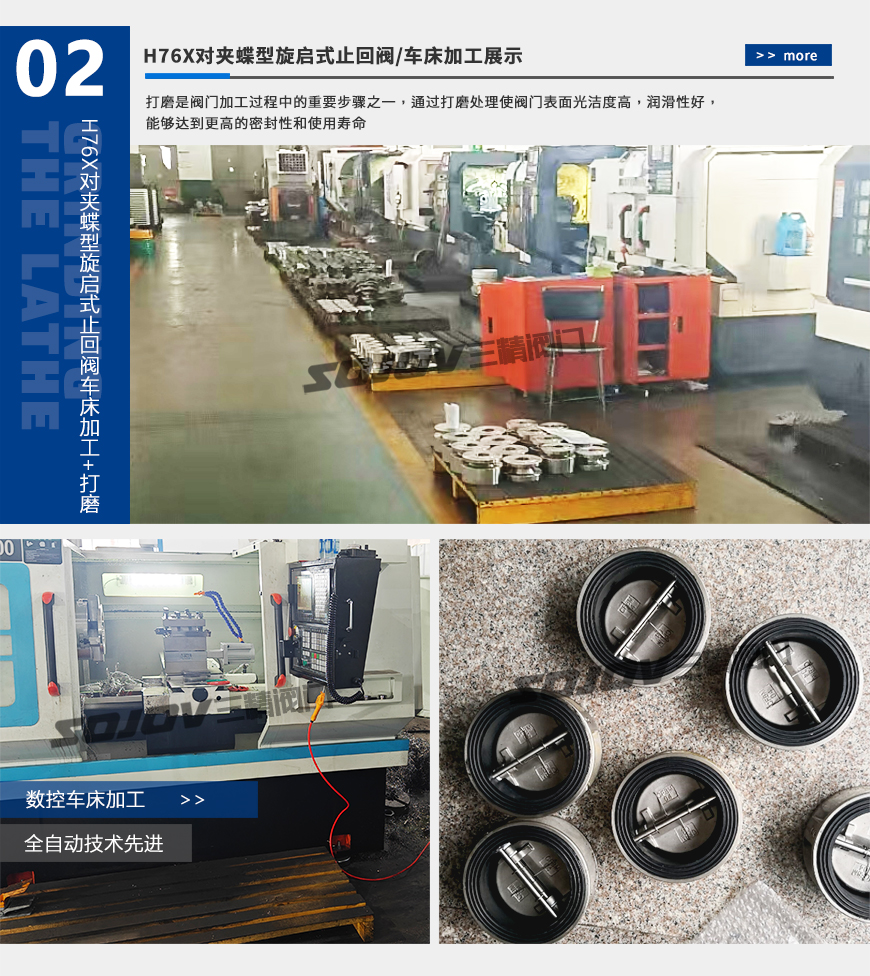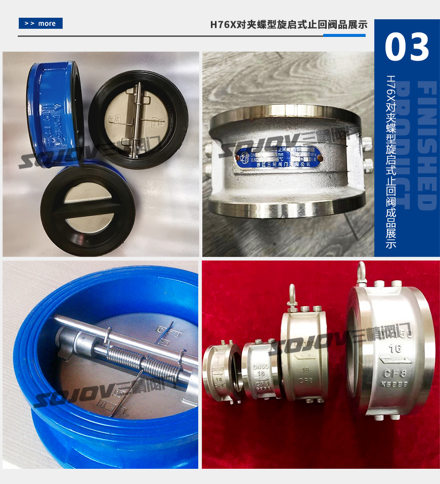 本公司生產(chǎn)的H76X型對夾式止回閥由閥體、閥瓣、閥桿及彈簧等零件組成,采用對夾連接。由于閥瓣的關(guān)閉行程短,并且有彈簧加載,可顯著減少水錘現(xiàn)象。該閥主要適用于城市、工業(yè)及高層建筑給水、排水管網(wǎng)上。由于其結(jié)構(gòu)長度比一般止回閥短,對有安裝空間限制的場所最為適用。