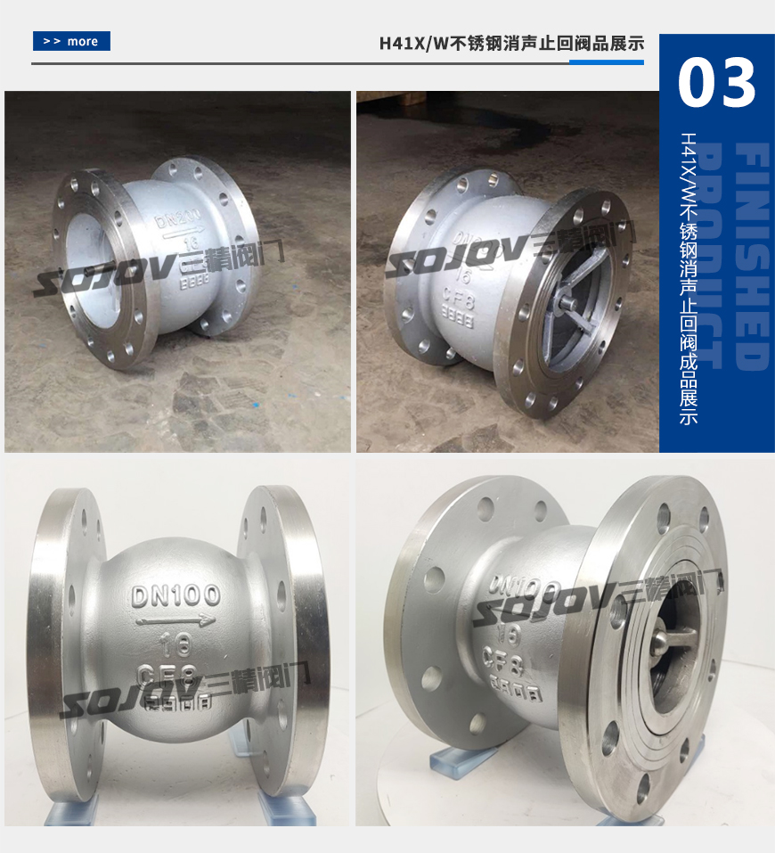 三精閥門公司生產(chǎn)的H41,HC41(B型),H41-16T消聲止回閥適用于給、排水管道,閥瓣采用進(jìn)出口兩端中心軸導(dǎo)向,啟閉靈活,可水平定裝或垂直安裝。閥瓣采用彈簧加載,其快速關(guān)閉能有效地減小水錘壓力,密封性能好,關(guān)閉無噪聲。它具有體積小、重量輕、流體阻力小、耐疲勞、壽命長等優(yōu)點。