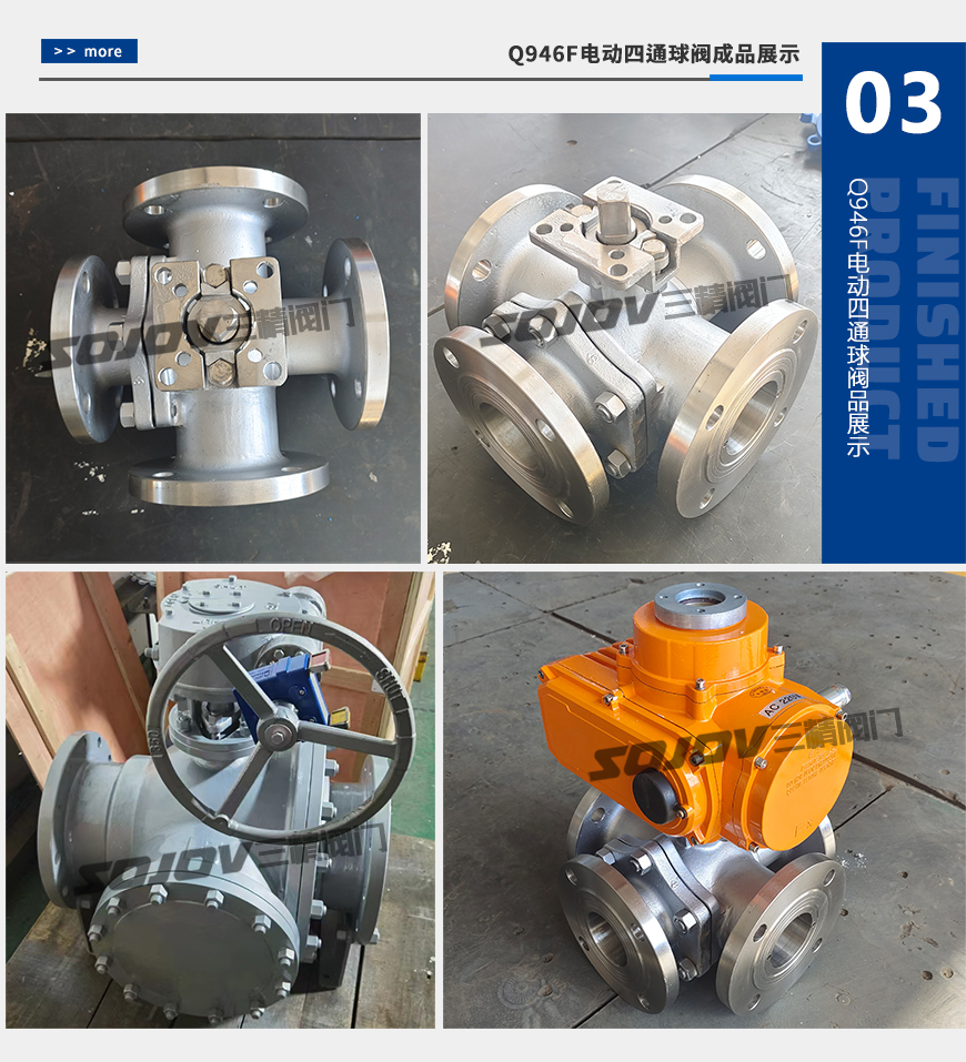 電動(dòng)四通球閥型號(hào):Q946FQ946H電動(dòng)四通球閥通徑:150MM-600MM電動(dòng)四通球閥使用壓力:1.6MPA-4.0MPA 電動(dòng)四通球閥連接方式:法蘭連接電動(dòng)四通球閥操作方式:電動(dòng)電動(dòng)四通球閥主要功能:起開(kāi)關(guān)作用電動(dòng)四通球閥使用介質(zhì):水.油品.蒸汽電動(dòng)四通球閥材質(zhì):鑄鋼.不銹鋼電動(dòng)四通球閥標(biāo)準(zhǔn):機(jī)械部標(biāo)準(zhǔn)或定做非標(biāo)