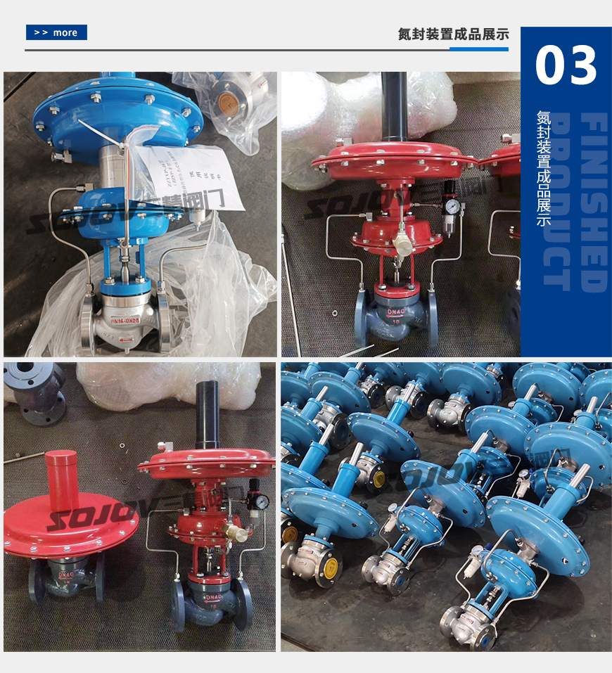 閥門生產(chǎn)的氮封閥、氮封裝置是自主開(kāi)發(fā)、研制的一套自力式微壓力控制系統(tǒng),只有用于保持容器頂部保護(hù)氣(一般為氮?dú)猓┑膲毫愣,以避免容器?nèi)物料與空氣直接接觸,防止物料揮發(fā)、被氧化,以及容器的安全。特別適用于各類大型儲(chǔ)罐的氣封保護(hù)系統(tǒng)。該產(chǎn)品具有節(jié)能、動(dòng)作靈敏、運(yùn)行可靠、操作與維修方便等特點(diǎn)。廣泛應(yīng)用于石油、化工等行業(yè)。