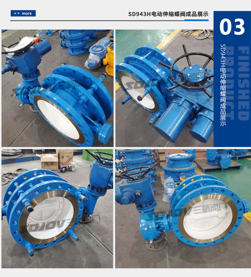 SD943H電動伸縮蝶閥適用于溫度≤80℃,公稱壓力≤1.6MPa的食品、醫(yī)藥、化工、石油、電力、輕紡、造紙等給排水、氣體管道上作調節(jié)流量和截流介質的作用,具有補償管道熱脹冷縮的功能。