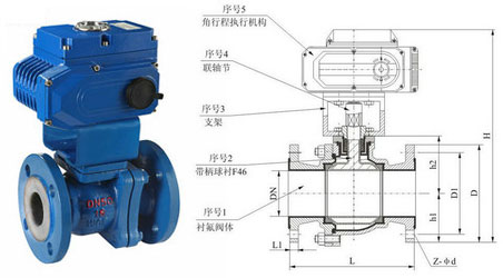 電動(dòng)襯氟球閥結(jié)構(gòu)圖