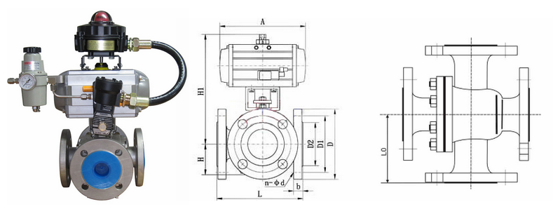 氣動四通球閥可同時對兩種介質的流向進行切換,替代了以前四個閥門的復雜操作,解除了所占空間大、成本高、操作煩瑣等問題,實現(xiàn)一閥多用的效果。氣動四通球閥為X形垂直通道,它的特點是球體的兩條通道為X形布置,四個通道口徑均布于球體赤道圓周截面上,當球體沿順時針旋轉90時,能使相對的兩個通道實現(xiàn)兩兩互通。