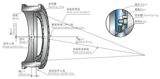 結(jié)構(gòu)形式:三偏心硬密封(對(duì)夾式,法蘭)
