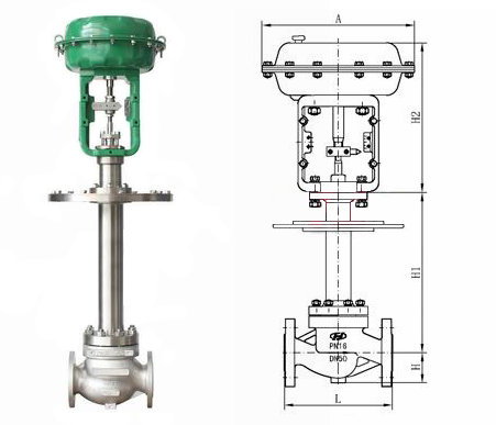 氣動(dòng)薄膜低溫調(diào)節(jié)閥適用于介質(zhì)溫度-40℃~ -196℃(如液氧、液氮等)的低溫、深冷場(chǎng)合,主要由多彈簧氣動(dòng)薄膜執(zhí)行器與帶長(zhǎng)頸接管的閥體組成,采用長(zhǎng)頸型上閥蓋的作用,使填料處于常溫下工作,并減少外界熱能傳入,為減少傳遞,長(zhǎng)頸一般采用薄壁結(jié)構(gòu),具有良好的耐低溫性,特別用于精確控低溫氣體、流體(如液氧、液氬等)的工藝參數(shù)保持在給定值。